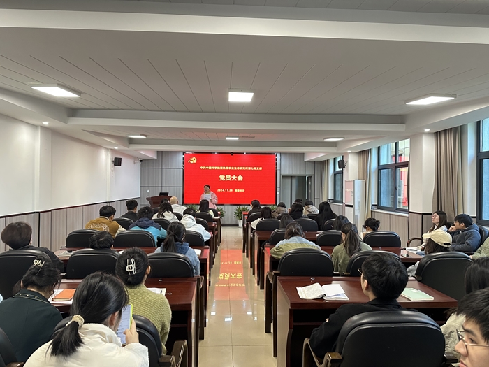 会上,宣传委员赖佳鑫代表支部对2024年度支部工作进行总结。她详细介绍了支部的基本情况,从加强理论学习、提高组织生活质量、推动支部标准化建设等方面重点阐述支部在党建工作中取得的显著成效,分享了支部党员在科研工作中取得的一系列成果,并对支部目前存在的问题及未来的努力向进行了报告。
