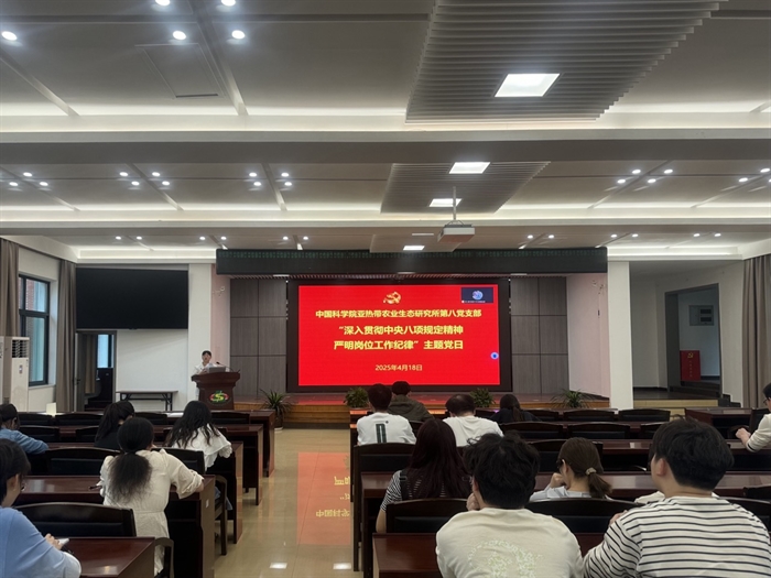 4月18日,中国科学院亚热带农业生态研究所第八党支部开展“深入贯彻中央八项规定精神 严明岗位工作纪律”主题党日。党委委员周传社到会指导?;嵋橛芍Р渴榧切淮现鞒?,支部党员和入党积极分子参加。