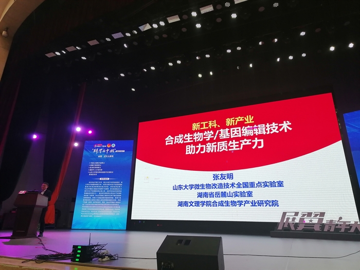 合成生物学技术有哪些?未来微生物(酵母)如何合成淀粉?中国工程院外籍院士张友明以《新工科新产业 合成生物学/基因编辑技术助力新质生产力》为题,从合成生物学面向国际科学技术最前沿、国家战略需求,介绍了合成生物学技术及该技术推动区域生物产业发展案例,Red/ET重组工程技术广泛应用于微生物基因组改造及微生物天然药物研发,对抗癌症及抗炎症等天然药物合成的基因簇进行克隆改造并实现了天然药物的高效生物合成等相关内容,为1000多名师生带来一场兼具学术深度与战略高度的科普报告。