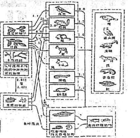 由于生态系统中食物营养的关系错综复杂而密切相关,许多食物链现象之间都存着一定的关系。由于是许多食物之间相互纵横交错,形成十分复杂的网络状结构—“食物网”。
