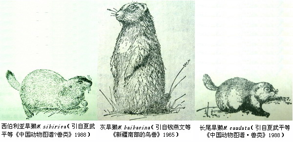 地松鼠亚科(Xerinae)的旱?。?em>Marmota)又名土拨鼠,藏语称“哈拉”,蒙语称“塔尔巴干”,汉人又称它为“雪猪”、“雪里猫”。虽也归松鼠科,却不象树栖性松鼠小巧玲珑、活泼可爱,也没有进“国‘三有’动物”红名录受?;さ暮迷?。它们是典型的地下穴居种类,体型粗大肥壮,颈粗吻阔,耳小眼细,四肢粗短,利爪坚硬,松尾短扁。因潜藏烈性病菌,又危害牧场,一向被疾控与植保部门列入监控、杀灭黑名单。