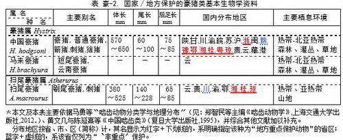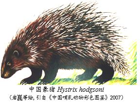 2000年发布的《国家?;さ挠幸娴幕蛘哂兄匾?、科学研究价值的陆生野生动物名录》(简称《国“三有”动物名录》)列有啮齿目Rodentia 5个科,鼯鼠科Pteromyidae、松鼠科Sciurdea及竹鼠科Rhizomyidae,为兽纲第46~80及84~87号,已在此前15篇逐一介绍;还有豪猪科Hystricidea 3种、鼠科Muridae 1种,为兽纲第81~83与88号。88号即鼠科之“社鼠Rattus niviventer”,今已改称Niviventer niviventer—白腹鼠属喜马拉雅社鼠,仅见个别作者曾报告在我国藏南的喜马拉雅山南坡有分布,但证据尚不足,有待调查核实,我们从略。本篇就讲豪猪科。