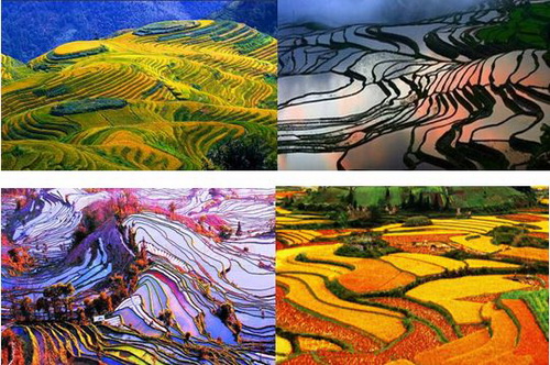 我国较为有名的梯田有云南哀牢山元阳梯田、广西龙胜龙脊梯田和湖南新化紫鹊界梯田,哀牢山哈尼梯田更是被列入了联合国教科文组织世界遗产名录。哀牢山哈尼梯田为云南梯田的代表作,被誉为“中国最美的山岭雕刻”。元阳梯田规模宏大,是哈尼梯田的核心区,所有的梯田都修筑在山坡上,梯田坡度在15°至75°之间。以一座山坡而论,梯田最高级数达3000级,这在中外梯田景观中是罕见的。龙脊梯田是广西著名风景区,距今已有近700年的历史。景区主要分为平安壮寨梯田和金坑红瑶梯田:平安壮寨梯田有“七星伴月”和“九龙五虎”两大著名景观,景色秀美飘逸;金坑红瑶梯田有“大界千层天梯”,“西山韶乐”和“金佛顶”三大著名景观,气势磅礴,直上云端。紫鹊界梯田位于新化县西部山区水车镇境内,梯田达8万余亩以上,其地势之高,规模之大,形态之美,堪称世界之最。