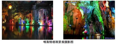 喀斯特溶洞是地下水沿可溶性岩体的层面、节理或裂隙进行溶蚀扩大而成的空洞,在喀斯特溶洞发展过程中,除了以溶蚀作用为主外,还伴有水利、机械等其他的侵蚀作用及生物作用。我国著名的喀斯特溶洞包括贵州的龙宫、桂林的芦笛岩等。溶洞中由于洞顶渗入的地下水中CO2含量较高,对可溶性石灰岩具有较强的溶蚀力,当这种溶液渗至洞内顶部出露形成水滴时,由于表面张力作用,水滴迅速释放出CO2形成碳酸钙薄膜沉积,随着不断渗流、沉积,洞顶形成具有空心的管状沉积物,直径一般小于1-2cm,成为石管。石管外壁也有渗滴水流时,石管就不断加大而成乳状沉积物,即石钟乳。当水滴从石钟乳上跌落至洞底时,变成许多小水珠或流动的水膜,这样就促进了水滴中CO2的散逸,而在洞底产生碳酸钙堆积,堆积物横切面没有中央通道,但具有同心圆结构,随水滴跌落不断由洞底往上增高形成锥状、塔状及盘状的沉积物,即石笋。由于重力作用,石钟乳和石笋相对增长,直至两者连接而成的柱状体,即石柱,随着洞顶下渗的水溶液继续沿石柱表面堆积,石柱不断加粗。含碳酸钙的水溶液在洞壁上漫流时,因CO2迅速逸散而产生片状和层状的碳酸钙堆积,即石幔,其表面具有弯曲的流纹,高度可达数十米,十分壮观。