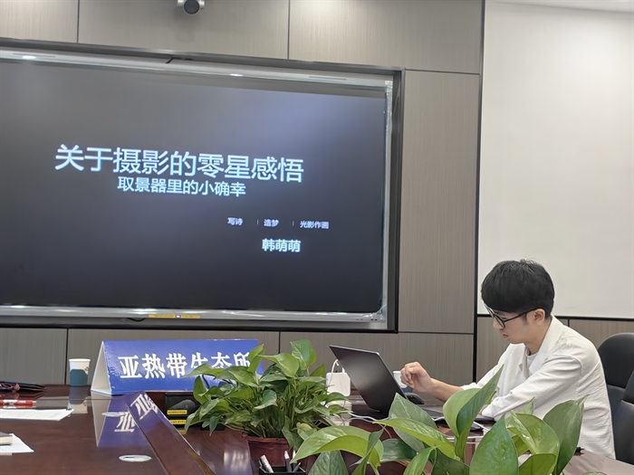 本期学术沙龙以“光与影”为主题,邀请了3位主讲人从不同领域进行报告分享。公共技术中心高级工程师彭灿为参会人员详细介绍了电镜、激光共聚焦与流式技术、相关仪器设备的具体功能及在科研工作中的广泛应用,并通过翔实的数据、图像及实例,强调了分析方法和试验设计的重要性,为参会人员顺利开展科研工作提供有力参考??λ固厍蚺┮瞪芯恐行脑谡静┦亢舐娇〗岷献陨硭邮碌墓庋佬谴衅鞣涠ū昙爸脖徊问恳8蟹囱菅芯烤樯芰宋佬巧阌安饬坑胍8屑际踉诨肪潮;ぁ⑴┮倒芾砗统鞘泄婊确矫娴挠τ们熬?。畜禽健康养殖与农牧复合生态研究中心在读研究生韩萌萌为大家介绍了摄影相关专业知识,强调了摄影构图与镜头焦段的重要性,帮助大家更好地运用构图和镜头焦段创作出令人惊艳的摄影作品?;嵘希牖崛嗽蔽粕沉魈庹箍巳攘业奶致酆蜕钊氲慕涣?。