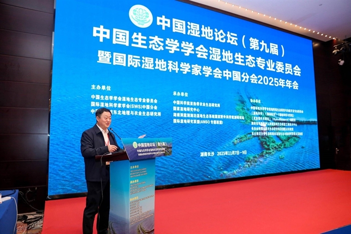 11月7日至9日,中国湿地论坛(第九届)中国生态学学会湿地生态专业委员会暨国际湿地科学家学会中国分会2025年年会在长沙召开。本次大会由中国生态学学会湿地生态专业委员会、国际湿地科学家学会(SWS)中国分会、中国科学院东北地理与农业生态研究所(下称“东北地理所”)主办,中国科学院亚热带农业生态研究所(下称“亚热带生态所”)、国家湿地研究中心、湖南洞庭湖湖泊湿地生态系统国家野外科学观测研究站(下称“洞庭湖站”)、国际湿地研究联盟(ANSO专题联盟)承办。中国工程院院士、亚热带生态所印遇龙研究员,中国生态学学会秘书长周伟奇研究员,中国生态学学会湿地生态专业委员会主任、东北地理所所长姜明研究员,中国科学院沈阳应用生态研究所党委书记、中国生态学学会湿地生态专业委员会副主任兼秘书长武海涛研究员,亚热带生态所所长陈洪松研究员、副所长谢永宏研究员,湖南省林业局副局长李林山,中国湿地?;ば岣崩硎鲁ぜ婷厥槌け锩?,国际湿地科学家学会主席Rebecca Pierce教授,美国北达科他州立大学Marinus L. Otte 教授,东北地理所吕宪国研究员,国际欧亚科学院院士、四川师范大学邓伟教授,中国科学院南京地理与湖泊研究所秦伯强研究员,东北地理所张敬杰研究员,中国科学院地理科学与资源研究所高扬研究员等湿地领域国内外专家、学者及研究生参加了本次盛会。本次大会共有来自60余家科研单位和高校的400余人参加会议。