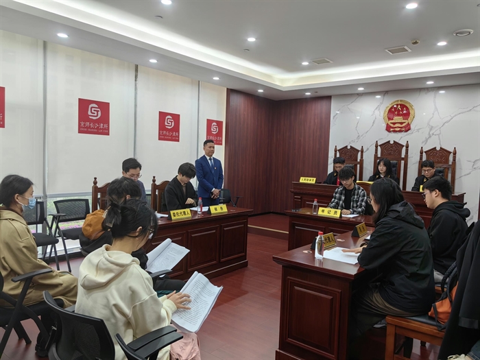 在学研究生近30人前往北京市京师(长沙)律师事务所开展研究生模拟法庭实践活动。在工作人员带领下,同学们参观了模拟法庭房间、办公场所、直播间和文化长廊等。