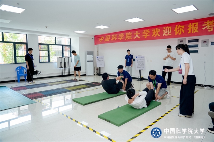 今年国科大在综合评价体测中,考生们可以在跳绳、立定跳远和仰卧起坐等项目中选择一项参加测试。体测结果将作为综合评价的一个重要参考,以合格性测试为主。