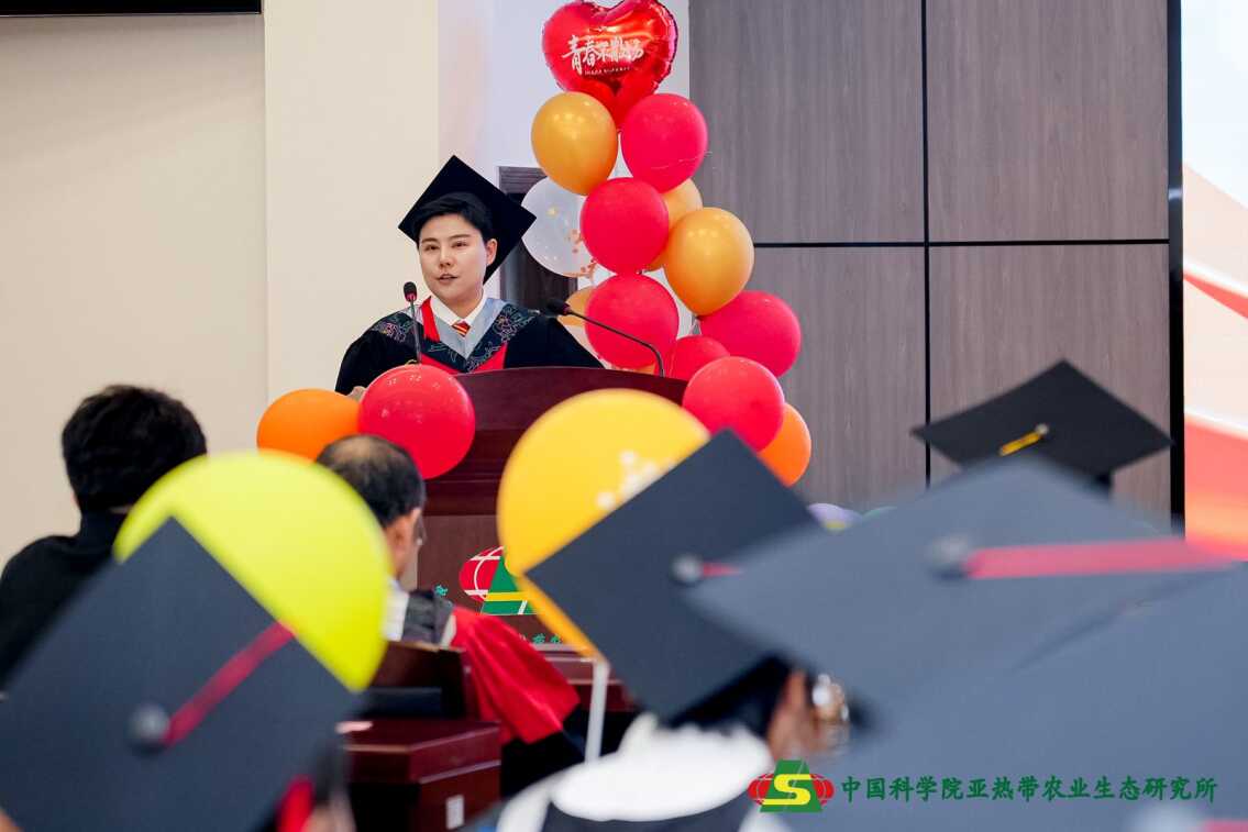 土壤生态与农业环境博士生刘铭羽作为毕业生代表发言。她回顾了在研究所的8年时光,总结陪伴她攻读硕士和博士研究生生涯的关键词是:研究所的所训、国科大校训和湖南人“吃得苦、霸得蛮、耐得烦”的精神。一路走来,8年的点点滴滴也化为“+∞”,这是对研究所正无穷的情感、向未来正无穷的能量。最后,她代表全体毕业生感谢研究所提供的平台,导师的谆谆教诲、支持和帮助,并表示将以建功新时代的决心继续奋斗努力。