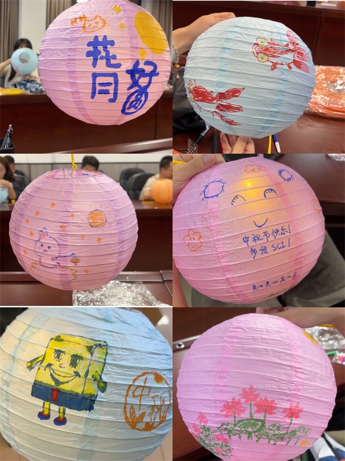 活动现场,首先映入眼帘的是“灯笼绘画”区域,同学们纷纷拿起画笔,在灯笼上勾勒出自己对中秋的美好祝愿和创意想象。一盏盏形态各异、色彩斑斓的灯笼逐渐成形,不仅展现了研究生们的艺术才华,更寄托了他们对家人和朋友的深切思念与祝福。