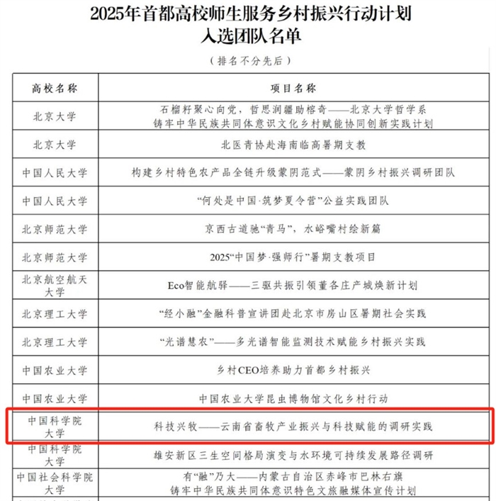 2025年首都高校师生服务乡村振兴行动计划部分入选名单