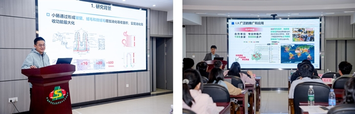 本届论坛通过特邀报告、专题学术汇报、科研成果展示等多元形式进行。湖南师范大学杨焕胜教授与中国科学院武汉植物园李大卫研究员分别以“猪肠道消化吸收面积的调控机制及营养干预研究”与“业精于勤——二十载猕猴桃科研与产业路”为题,分享自己科研成果和学习成长经历。所内外21名研究生围绕近期研究进展及研究成果作了精彩的学术报告。评审专家组综合报告的选题目的意义、研究方法与技术路线合理性、分析论证充分性、成果创新性、综合表达以及PPT制作水平对每场报告评分,并提出中肯的意见和建议,现场学术氛围浓厚。活动还展出了近40份科研成果海报,在场师生围绕墙报所展示的研究创新性、科学性及设计美观度等多个维度进行深入交流,有效激发了现场的热烈讨论氛围。