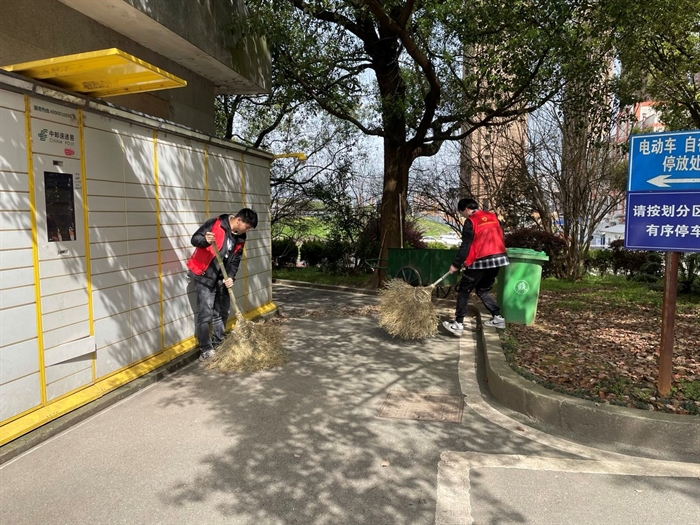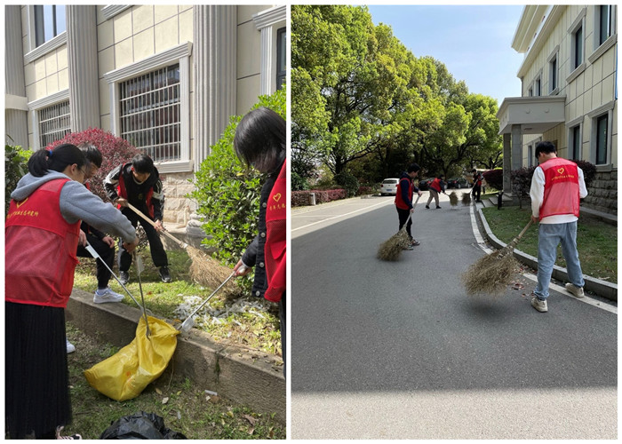 志愿者们带上扫帚、夹子等工具,对研究所内道路两边、绿化带及卫生死角的白色垃圾、落叶等进行清理,大家分工有序,有的清扫废弃物,有的捡拾花坛中的白色垃圾,“红马甲”们积极践行志愿服务精神,形成了一道亮丽的风景线。